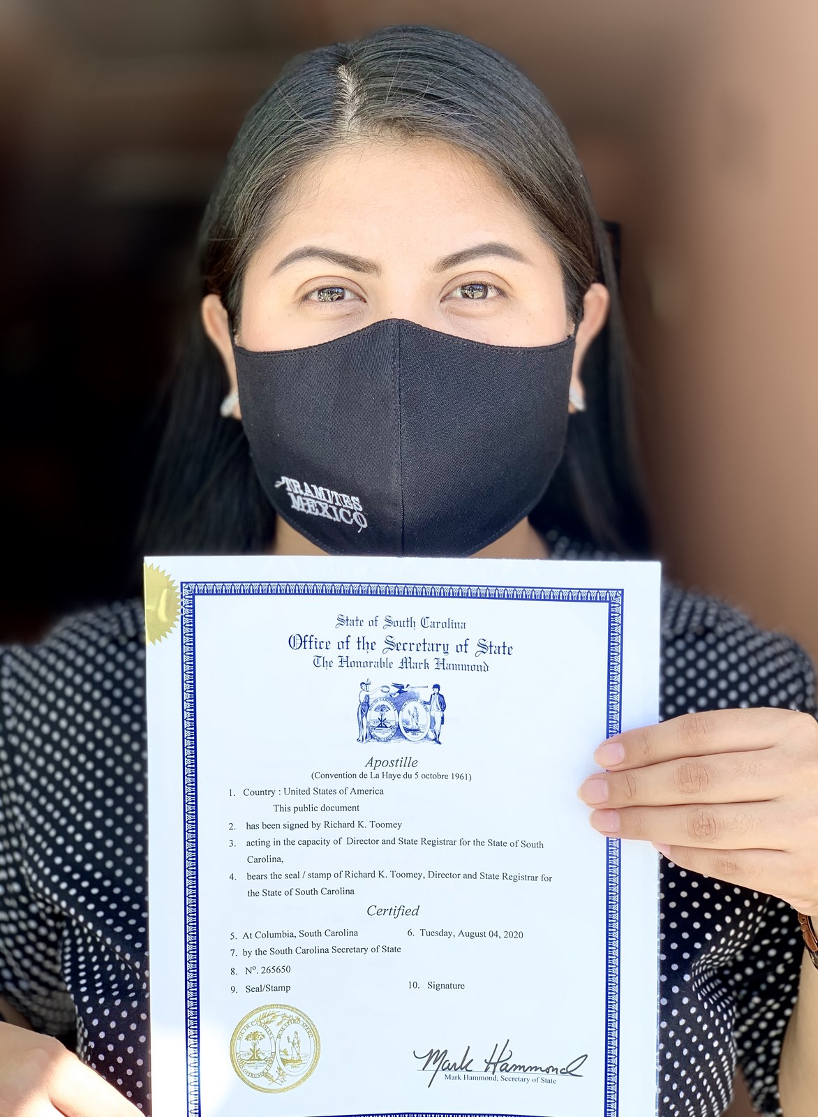 Servicios de Apostilla de documentos emitidos en las Ciudades de Columbia, Charleston, North Charleston, de todo el Estado de Carolina del Sur EEUU